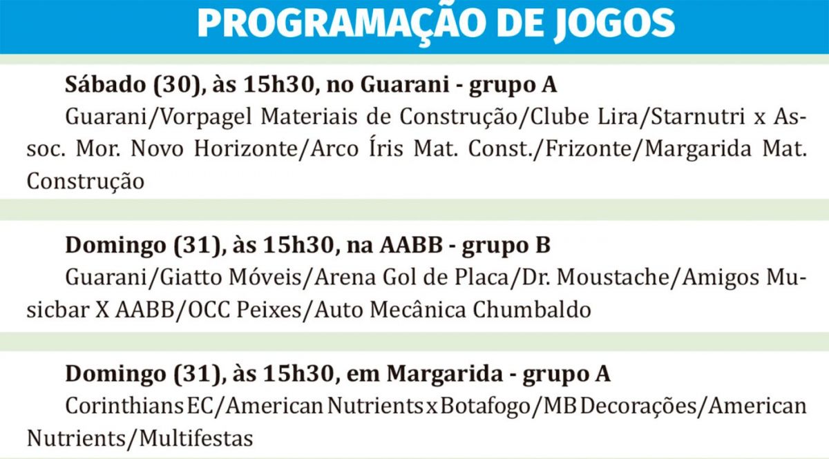 Além de Rovinni FC x Grêmio Aimoré, amanhã, pelo grupo B, outras três partidas vão movimentar o Municipal neste fim de semana.