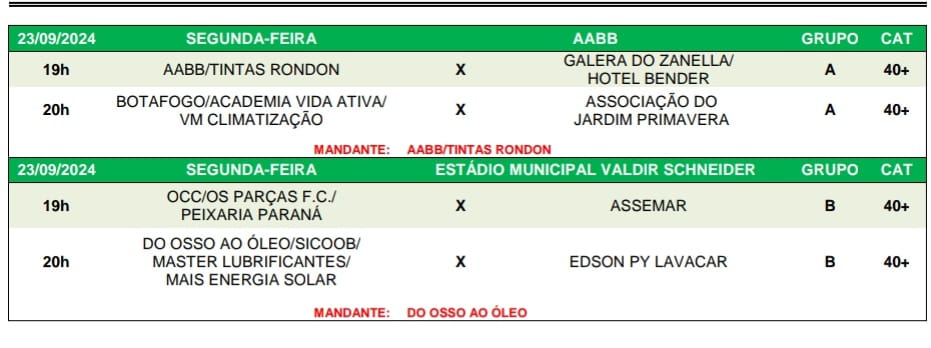 Na próxima segunda-feira (23), o Municipal Veterano terá prosseguimento com rodada dupla. Confira a programação: