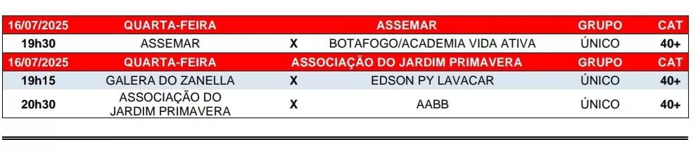 Três partidas movimentaram nesta quarta-feira (09) a 2ª rodada do Campeonato Municipal de Futebol Suíço Veterano (40+) 2025, promovido pela Secretaria de Esporte e Lazer de Marechal Rondon em parceria com a Liga Rondonense de Esportes.