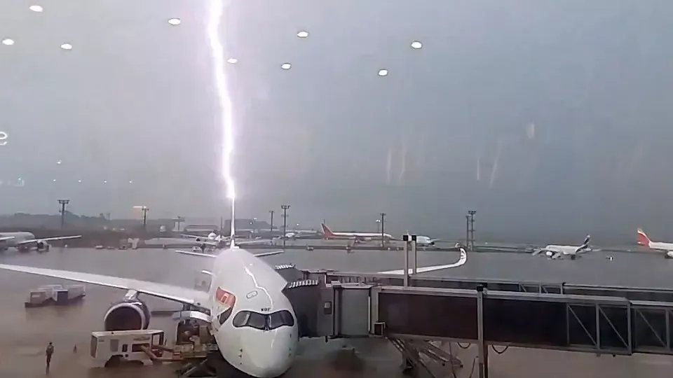 Um vídeo que circula nas redes sociais captou o momento exato em que um avião foi atingido por um raio, no aeroporto internacional de Guarulhos, em São Paulo. A situação foi registrada durante um temporal na tarde da última sexta-feira (24).