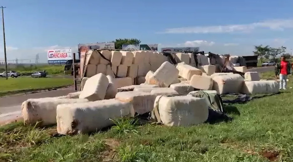 Um bitrem carregado com algodão tombou na manhã desta quinta-feira (16), na BR-163, em Guaíra. O trevo é um entroncamento que dá acesso para Marechal Cândido Rondon, Terra Roxa e Guaíra.
