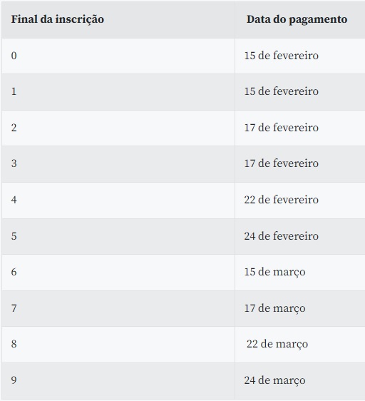 Também nesta terça-feira, o Banco do Brasil libera o abono salarial para os trabalhadores do setor público com inscrição de final 6. O pagamento para essa categoria começou a ser feito em 15 de fevereiro e segue até 24 de março, com base no dígito final da inscrição do servidor.