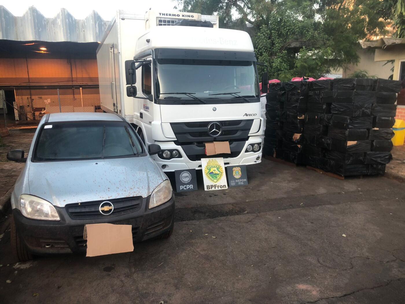 Com a aproximação policial os indivíduos fugiram em meio à mata, abandonando um caminhão e um carro carregados com cigarros contrabandeados. Os veículos e contrabando foram encaminhados para a Receita Federal em Foz do Iguaçu-PR.