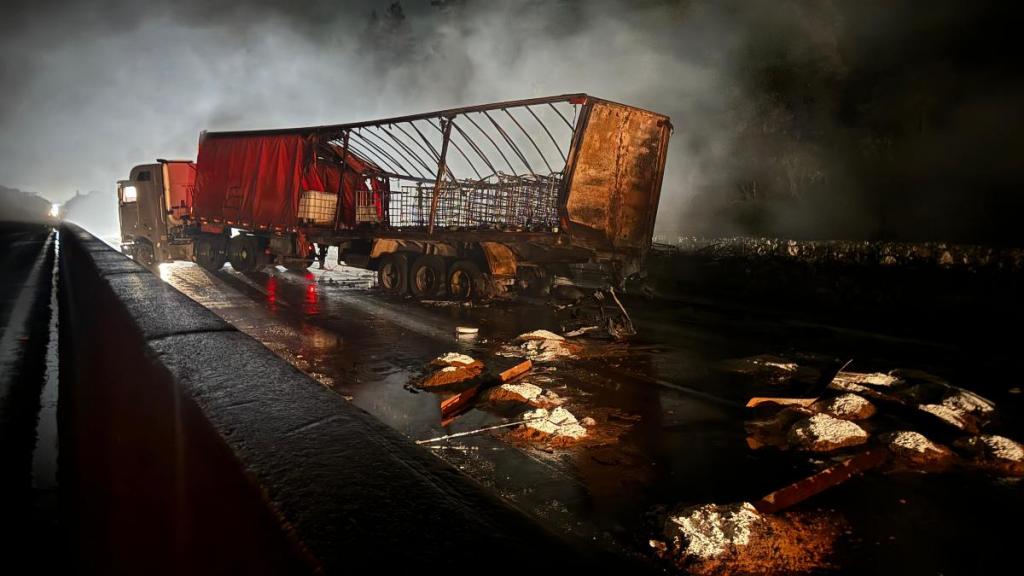 Uma colisão traseira envolvendo dois caminhões provocou um incêndio em ambos os veículos, no final da noite da segunda-feira (9), no quilômetro 57 da BR-277 em São José dos Pinhais, na Região Metropolitana de Curitiba. Um dos condutores foi socorrido pelas equipes de emergência e encaminhado para o Hospital Evangélico, na capital paranaense.