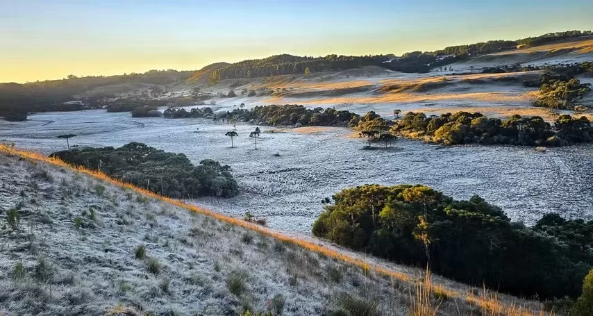 O amanhecer desta quarta-feira (11) foi de frio extremo em Santa Catarina. A Serra registrou geada e mínimas negativas, com a menor delas em São Joaquim, onde fez -6,5ºC e até camisetas congelaram. Essa foi a menor temperatura do ano no estado.