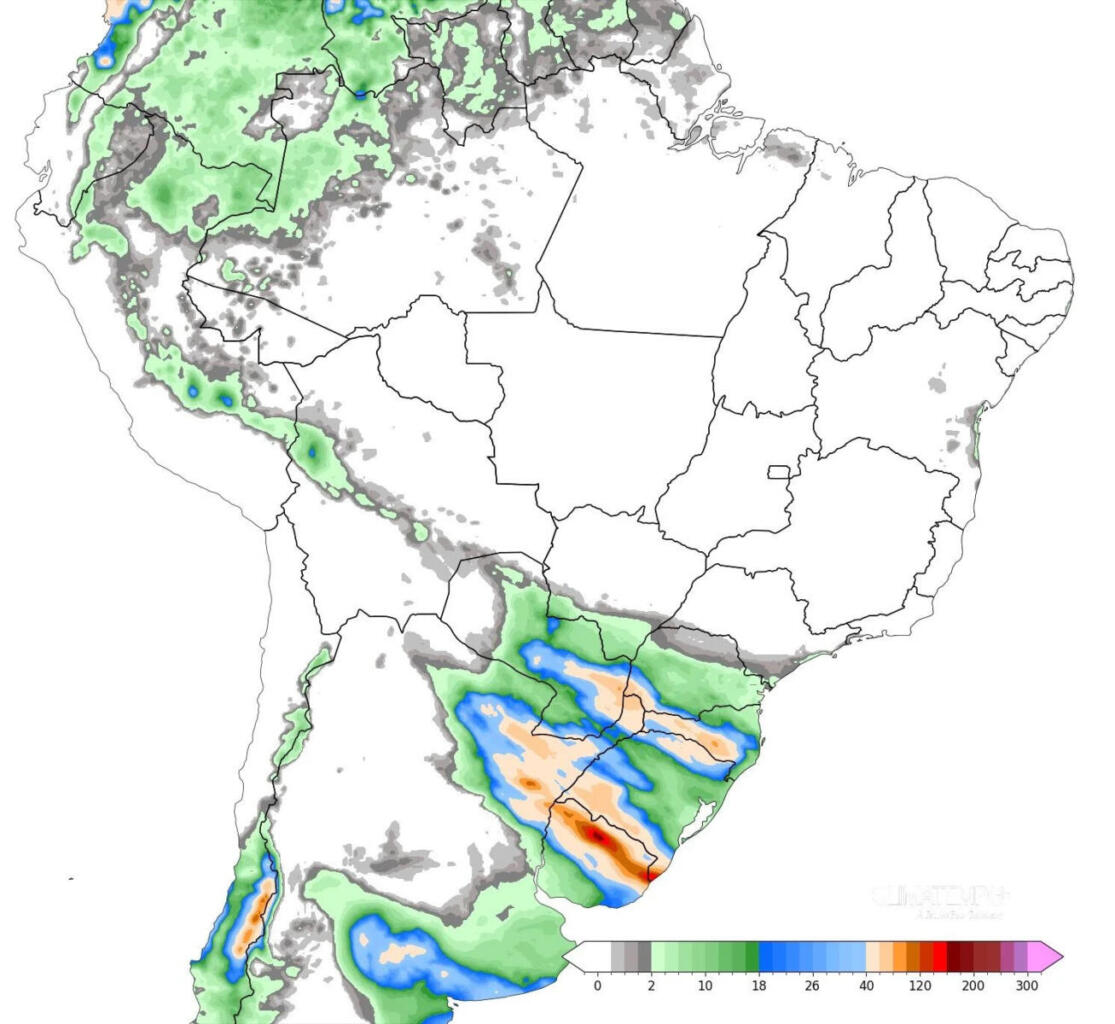 Os maiores acumulados de chuva nos próximos dias estão previstos para as regiões do oeste, campanha e sul do Rio Grande do Sul, além da faixa centro-oeste de Santa Catarina e oeste do Paraná, onde os volumes podem ultrapassar 80 milímetros. Após a passagem da frente fria, o frio ingressará com força nos três estados do Sul, trazendo uma queda acentuada nas temperaturas.