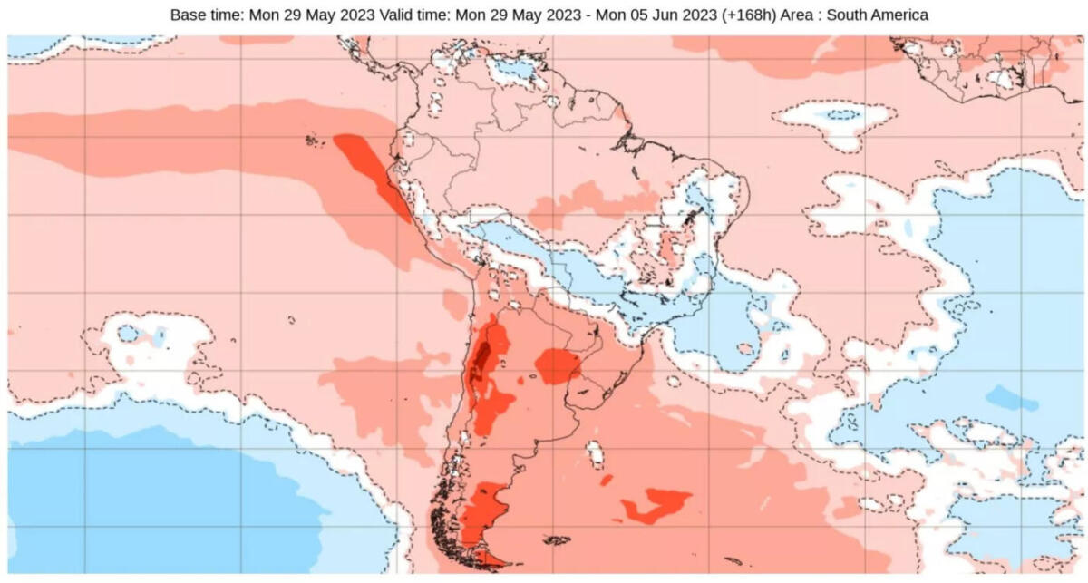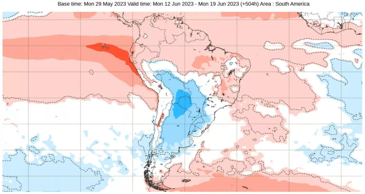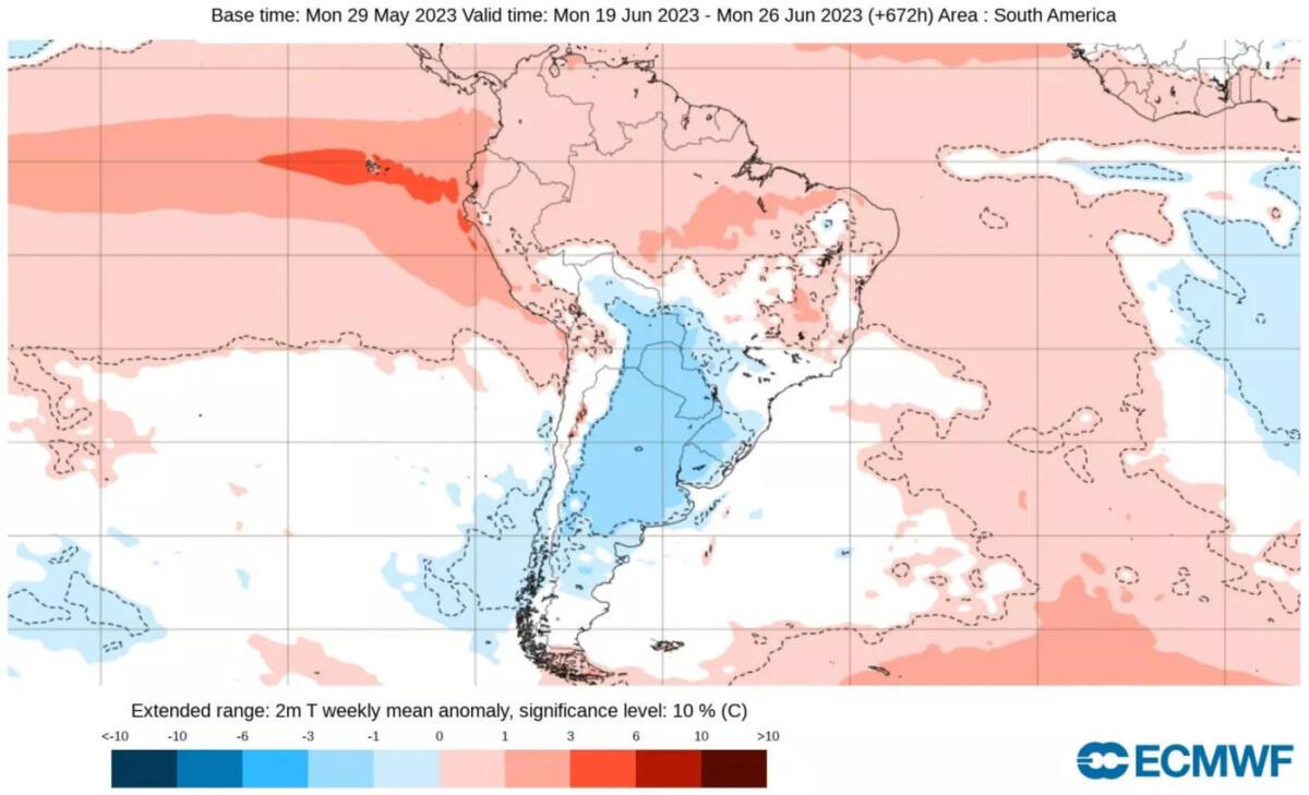 A primeira metade do mês, assim, deve ter muitos dias de temperatura acima da média sem a influência de uma massa de ar frio de maior intensidade. Entre as segunda e terceira semanas de junho o padrão pode gradualmente começar a mudar, dando lugar a uma segunda quinzena do mês com maior número de dias frios e alguns gelados pelas mínimas baixas, o que traria geada em maior número de localidades.