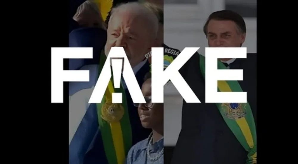 “Até a faixa é uma fraude! Alexandre de Moraes entrega faixa fake para o ladrão posar de presidente! Confira a diferença na imagem”, diz a mensagem falsa compartilhada pela atriz Regina Duarte no Instagram e por várias contas em outras redes sociais.
