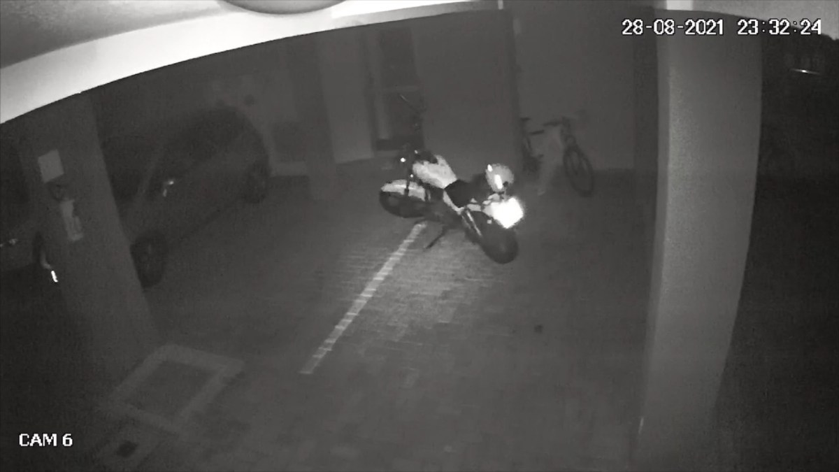 A câmera de segurança de um condomínio em Londrina flagrou um caso peculiar. No último sábado (28), pouco antes da meia-noite, uma moto se desloca sozinha pela garagem.