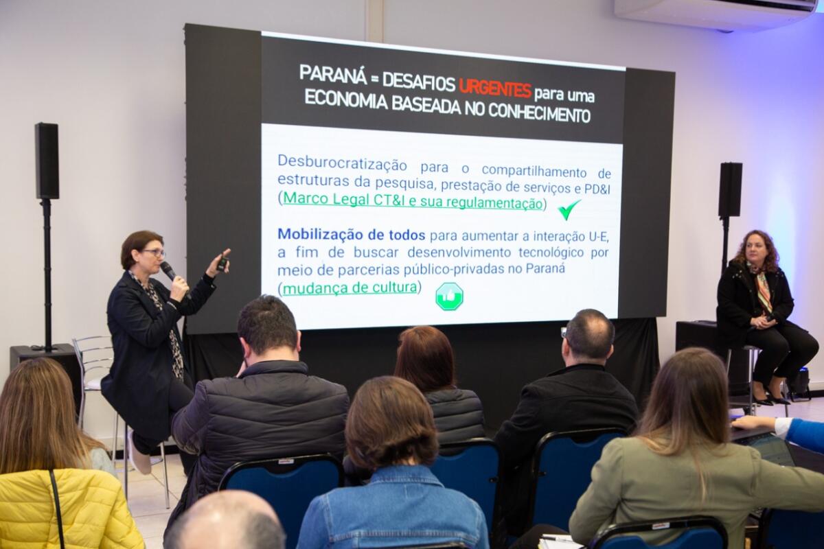 Na sequência, ocorreu a apresentação da BioLinker, startup de São Paulo especialista na sintetização de proteínas in vitro. Posteriormente, ocorreu um painel intitulado “Novo Marco Legal de Inovação e as possibilidades para Incubadoras”, conduzido pela assessora técnica da Superintendência Geral de Ciência, Tecnologia e Ensino Superior (Seti), Erika Dmitruk, e pela diretora da divisão de propriedade intelectual na Agência de Inovação da Unicentro, Claudia Crisostimo. Para encerrar, o consultor do Sebrae/PR, Elisandro Ferreira, falou sobreo habitat de inovação das regiões Sul e Sudeste do Estado.