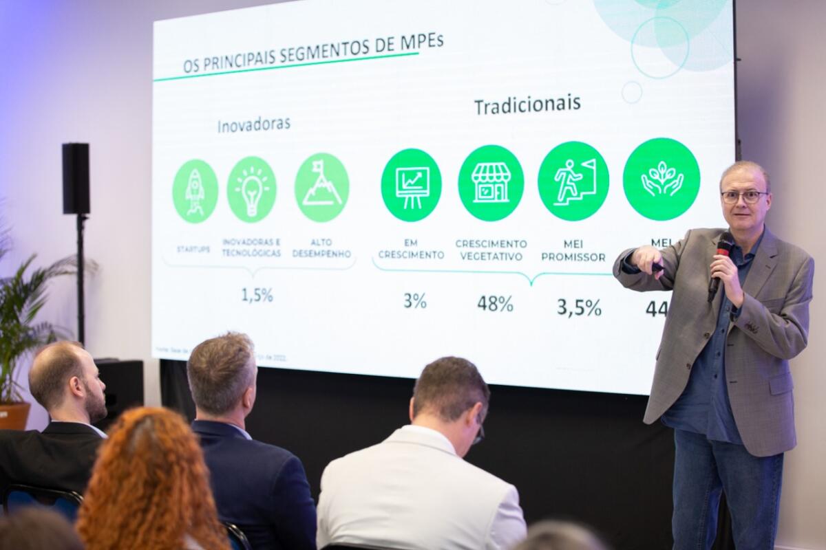 Na sequência, o diretor de operações do Sebrae/PR, Julio Agostini, fez uma exposição sobre os dados e o panorama geral do ecossistema de inovação do Paraná, destacando que existe uma necessidade cada vez mais urgente de o Brasil se tornar referência em inovação para que haja mais diversificação na economia.