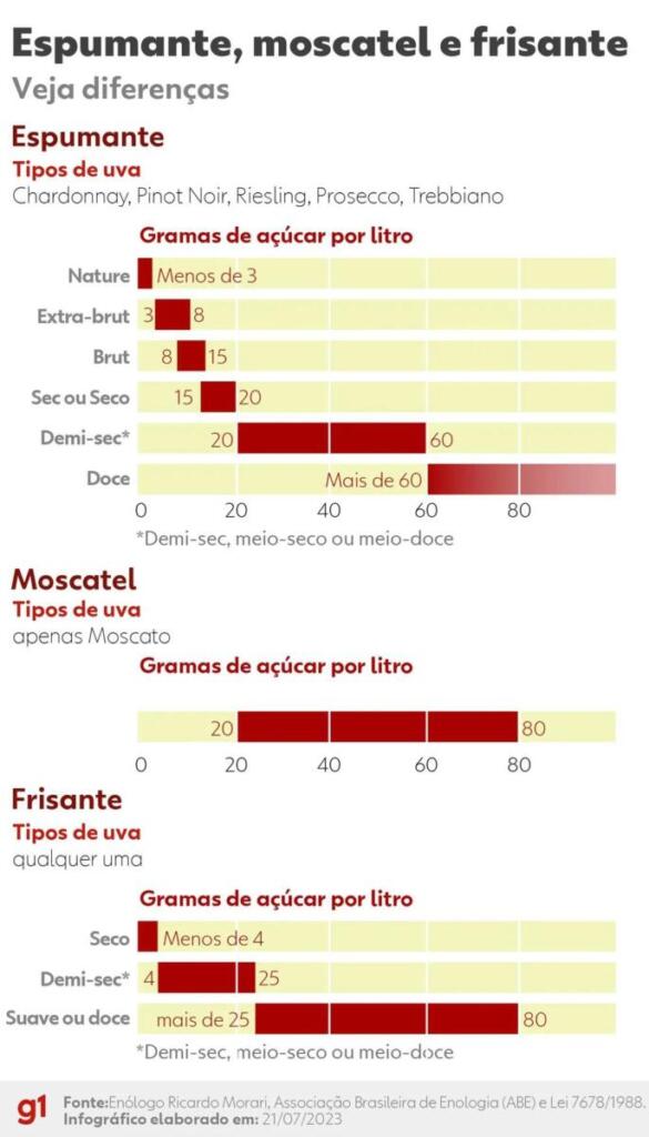 O enólogo Ricardo Morari explica que essas variações são nada mais do que os diferentes níveis de açúcar de cada bebida que, inclusive, estão previstos em lei.