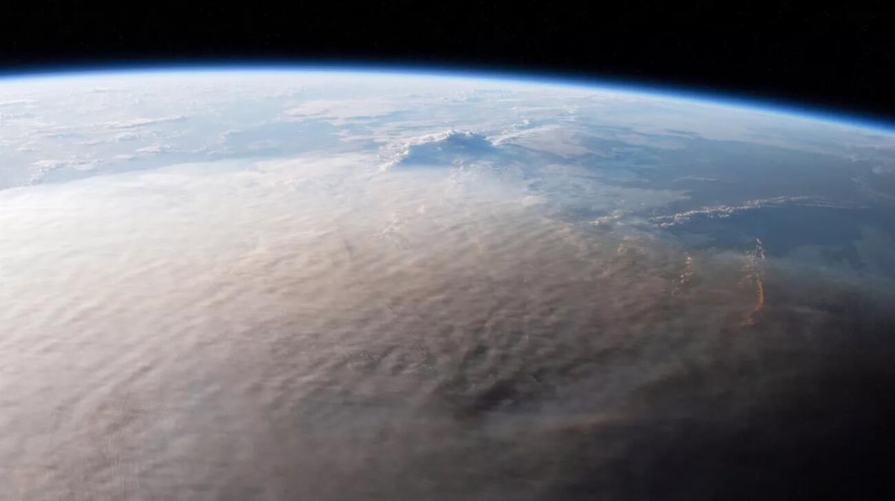 Astronautas a borda da Estação Espacial Internacional registraram imagens da nuvem de cinzas do vulcão de Tonga atingindo camadas superiores da atmosfera da Terra | NASA