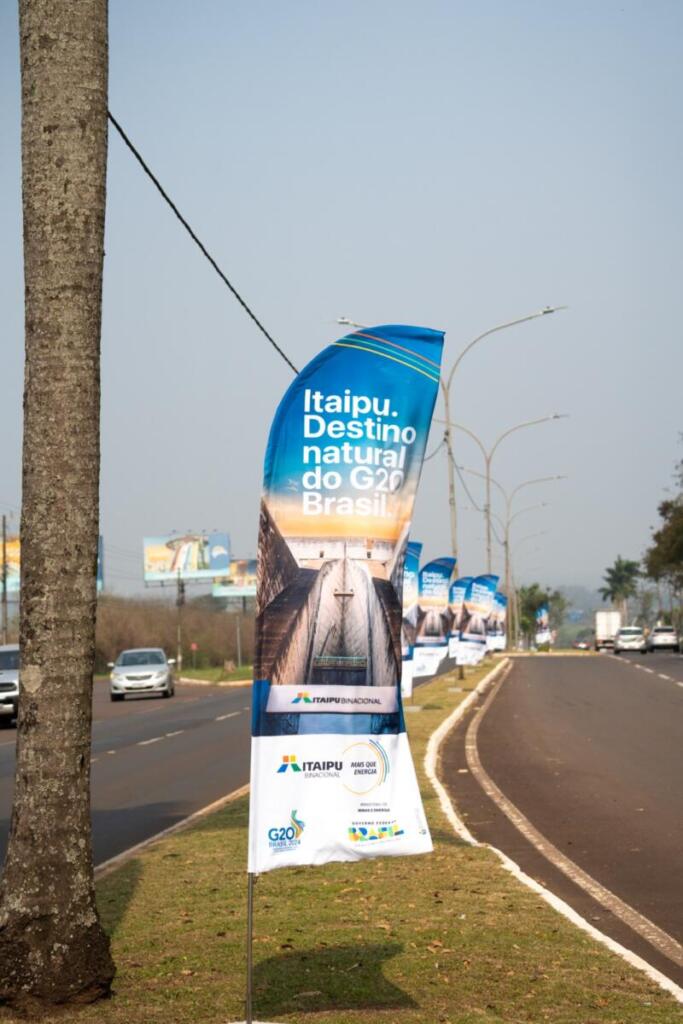 Foz do Iguaçu/PR está se preparando para receber encontros ministeriais do G20, grupo formado pelas principais economias do mundo, de 30 de setembro a quatro de outubro de 2024. Já há windbanners com a frase “Itaipu: Destino natural do G20 no Brasil” em parte do trajeto da Avenidas das Cataratas, no trecho entre o Hotel Bourbon Cataratas do Iguaçu Thermas Eco Resort até o trevo do Shopping Catuaí Palladium, passando pelo centro de convenções do Mabu Thermas Grand Resort.