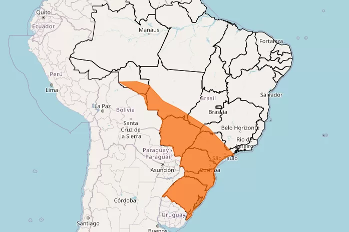 O Instituto Nacional de Meteorologia (Inmet) emitiu alerta laranja para os estados do Rio Grande do Sul, Paraná, Santa Catarina, Mato Grosso do Sul, parte de Mato Grosso, Goiás, Minas Gerais, Rondônia e São Paulo em razão das baixas temperaturas. O alerta laranja, que indica perigo, está em vigor até o fim de terça-feira (24).