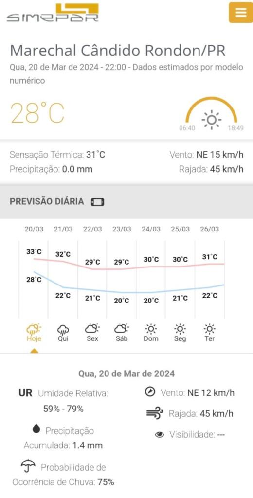 Previsão do tempo para Marechal Cândido Rondon nos próximos dias: