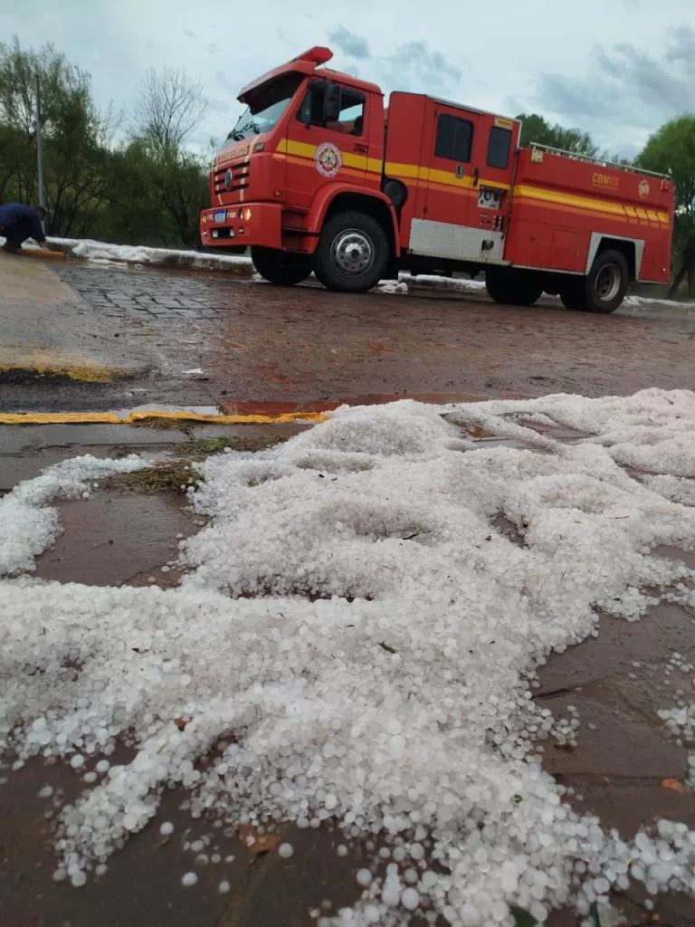 A quantidade de granizo foi tão grande em Vacaria durante a tempestade que blocos de gelo podiam ser vistos nas ruas e nos pátios de empresas e moradias da cidade.