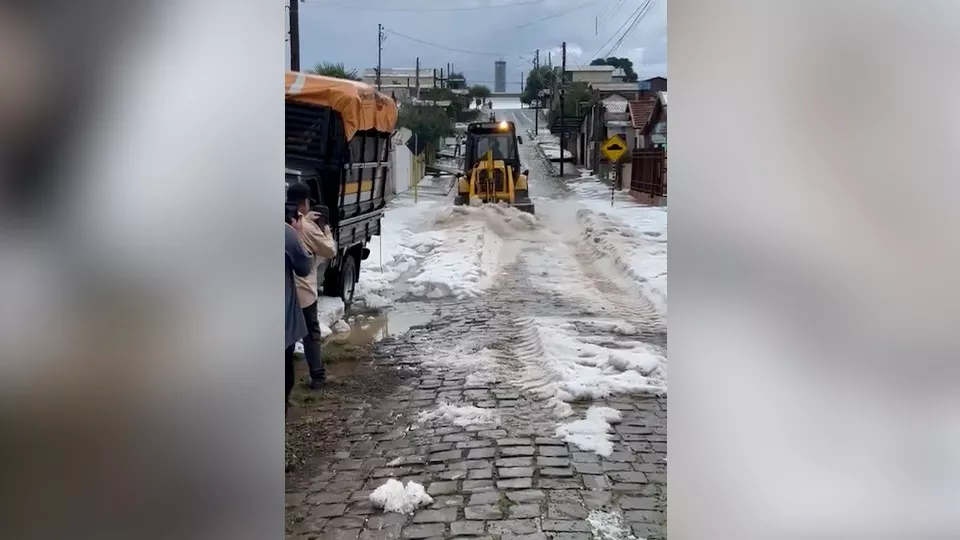 A quantidade de granizo foi tão grande em Vacaria durante a tempestade que blocos de gelo podiam ser vistos nas ruas e nos pátios de empresas e moradias da cidade.