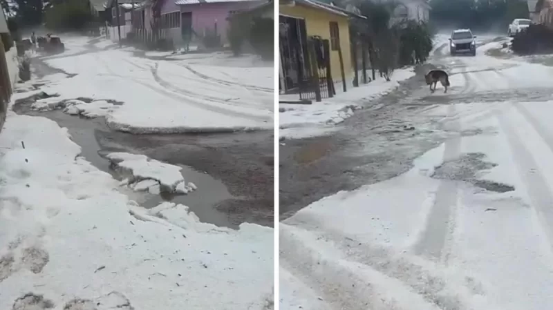 Uma forte chuva de granizo que atingiu São Joaquim neste sábado (19) criou uma camada de gelo impressionante na cidade da Serra catarinense. As imagens foram compartilhadas no perfil São Joaquim Online no Instagram. A paisagem esbranquiçada mostra um acúmulo tão grande de granizo que até se assemelha a uma nevasca.