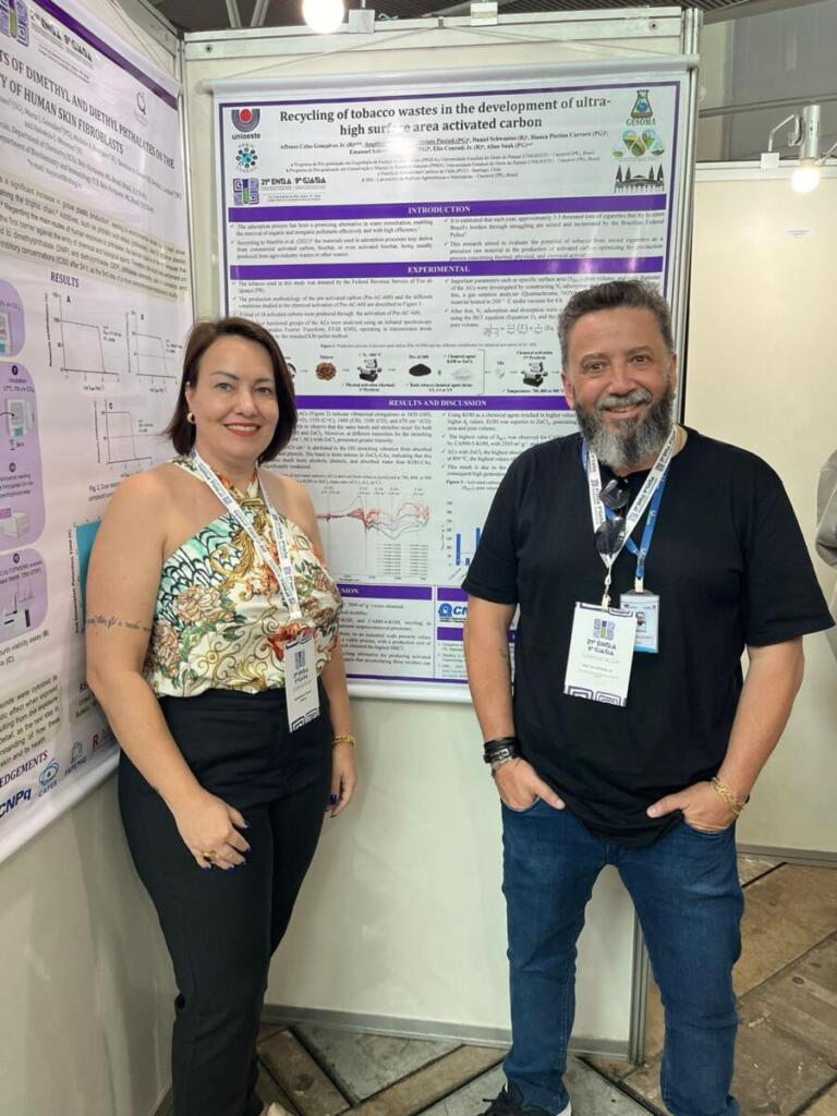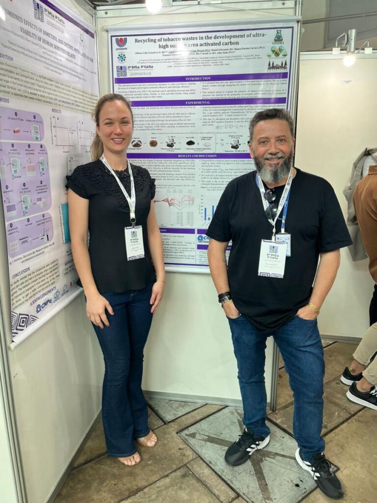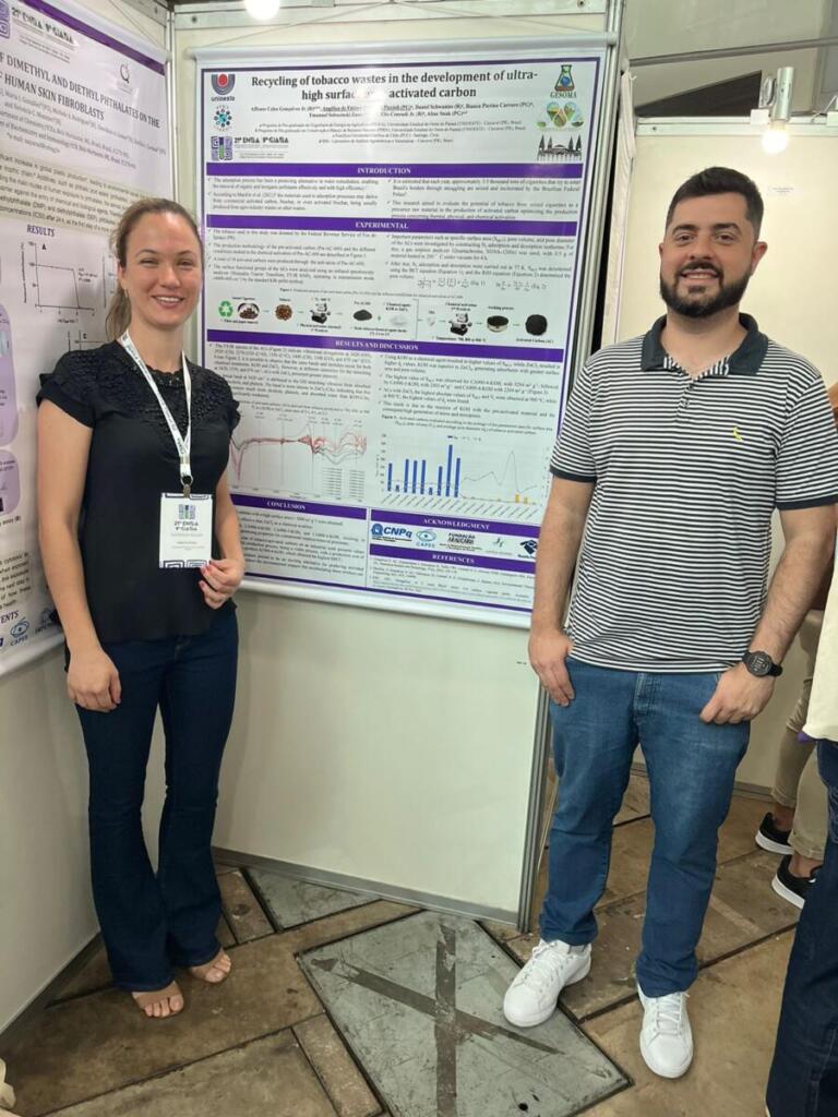 Foram apresentados dois trabalhos científicos intitulados: 1) Recycling of tobacco wastes in the development of ultra-high surface area activated carbon; 2) Highly Porous Activated Carbon from Recycled Tobacco Waste: A Promising Adsorbent for Thiamethoxam Removal.