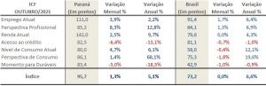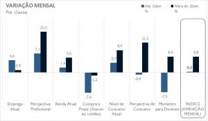 Já os fatores Acesso ao Crédito e Momento para Duráveis estão em queda tanto na variação mensal quanto na anual.