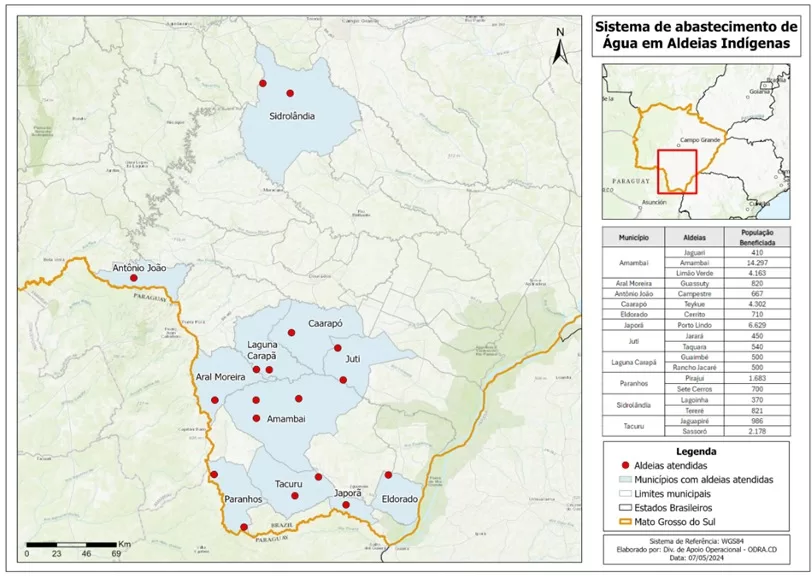 Uma dessas parcerias, com a Empresa de Saneamento do Mato Grosso do Sul (Sanesul), beneficia diretamente 40.636 indígenas de 18 aldeias localizadas em 11 municípios do MS. Nessa ação, a Itaipu está investindo R$ 45 milhões, que se somam a outros R$ 15 milhões da Sanesul, para instalar sistemas de abastecimento nas aldeias.