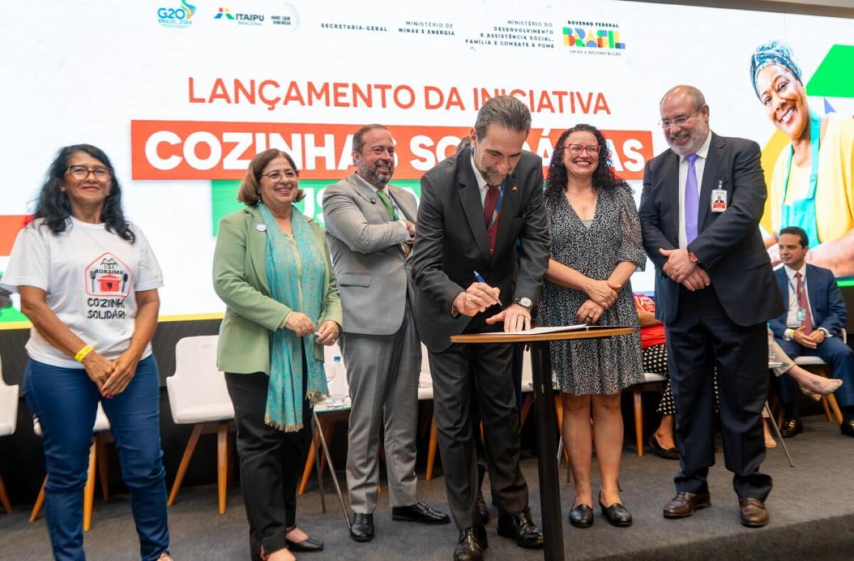 Autoridades do Governo Federal e a Itaipu Binacional assinaram, nesta quarta-feira (2), um protocolo de intenções da iniciativa Cozinhas Solidárias Sustentáveis, que prevê o fornecimento de equipamentos de “cocção limpa” para o preparo de refeições e a instalação de biodigestores. Os equipamentos transformarão resíduos orgânicos em biogás, que será utilizado para o cozimento dos alimentos, promovendo, assim, um ciclo de aproveitamento sustentável.