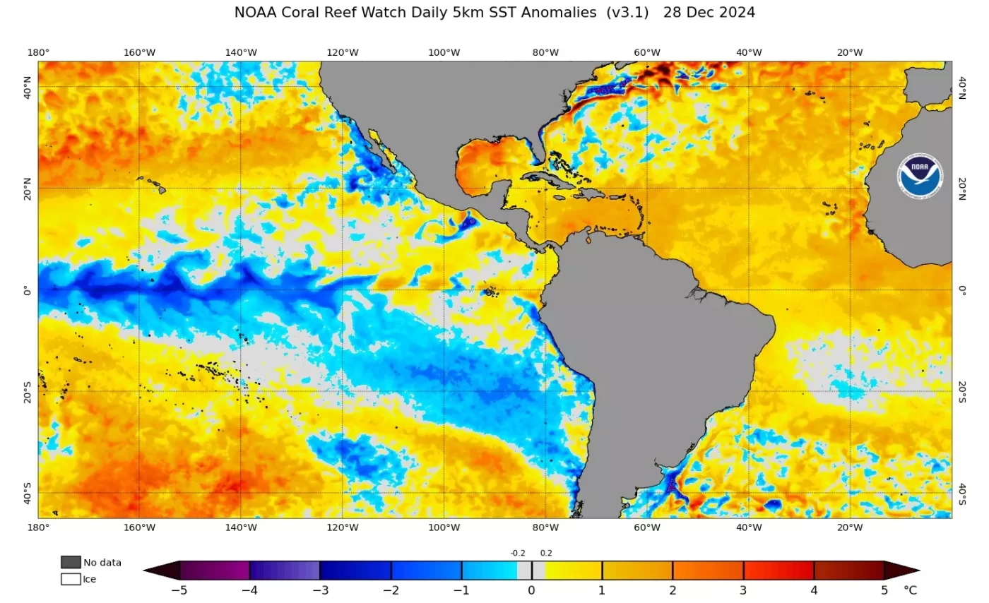 Apenas no boletim semanal de 11 de dezembro da NOAA a anomalia informada passou a estar em patamar de La Niña. Ocorre que nos últimos 15 a 20 dias houve um resfriamento maior das águas superficiais do Oceano Pacífico Equatorial e as anomalias de temperatura do mar passaram a ser solidamente em terreno de La Niña.