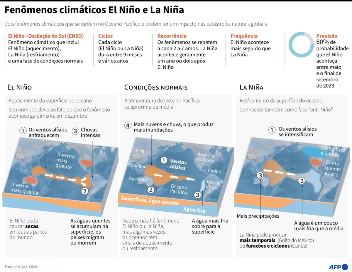 Durante um evento, as águas do oceano Pacífico equatorial central e oriental ficam mais frias do que o normal. Isso tem efeitos significativos nos padrões de vento, precipitação e temperatura ao redor do globo. A última vez em que a fase fria esteve presente foi entre 2020 e 2023 com um longo evento do fenômeno que trouxe sucessivas estiagens no Sul do Brasil e uma crise hídrica no Uruguai, Argentina e Paraguai.