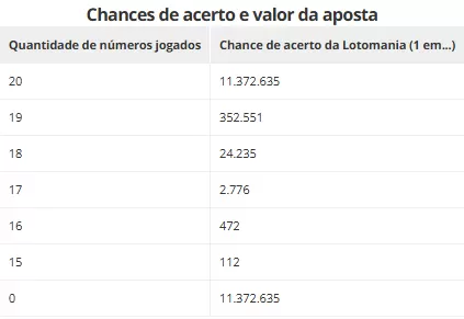 São premiadas as apostas que acertarem 20, 19, 18, 17, 16, 15 ou nenhum número.