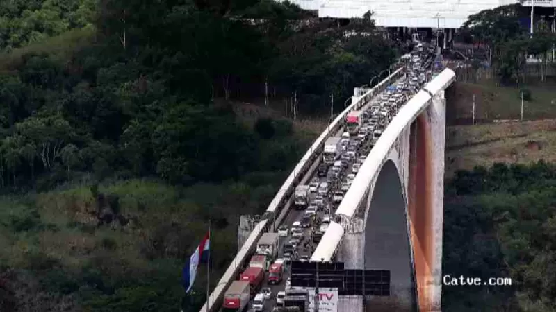 Uma manifestação realizada no Paraguai causou lentidão no trânsito na Ponte da Amizade na manhã desta quarta-feira (11).