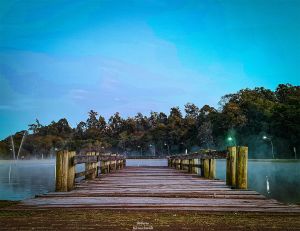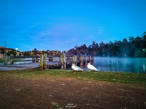 Mesmo sem tanta geada, a paisagem gelada continuava cativando olhares e flashes no Lago Municipal rondonense.