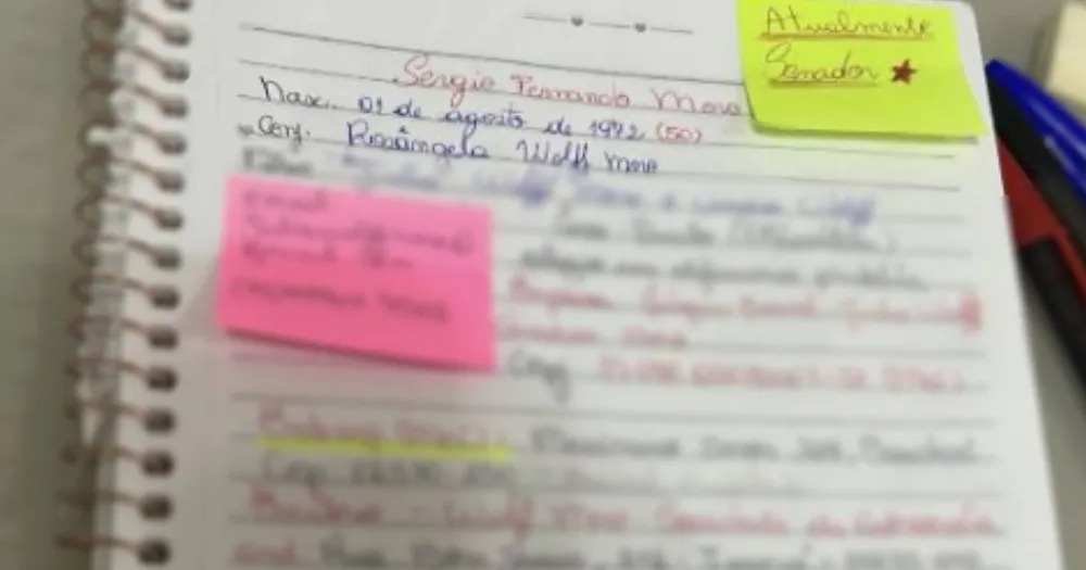 De acordo com a decisão que teve o sigilo derrubado, um caderno encontrado nas investigações comprova “categoricamente” os levantamentos de informações pessoais sobre Moro, a esposa, deputada federal Rosângela Moro (União Brasil), e os filhos do casal. O caderno detalha, por exemplo, endereços do casal.