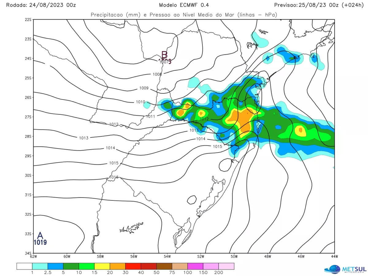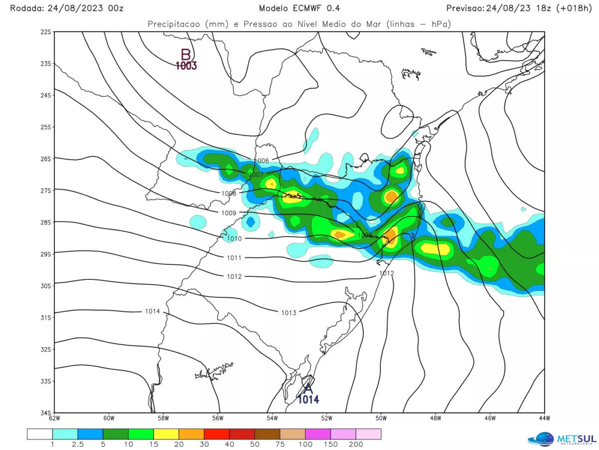 Em Santa Catarina, ao contrário, há risco de temporais isolados no decorrer do dia em todas as regiões do Estado, alcançando localidades que até agora escaparam das condições de tempo severo como o Oeste e o Meio-Oeste catarinense. No Paraná, o risco é maior no Sul e no Leste do Estado, incluindo a área de Curitiba, na segunda metade do dia.