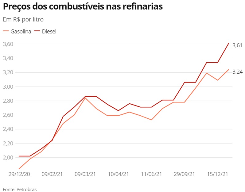 “Esses ajustes são importantes para garantir que o mercado siga sendo suprido em bases econômicas e sem riscos de desabastecimento pelos diferentes atores responsáveis pelo atendimento às diversas regiões brasileiras: distribuidores, importadores e outros produtores, além da Petrobras”, informou a estatal em comunicado divulgado nesta terça.