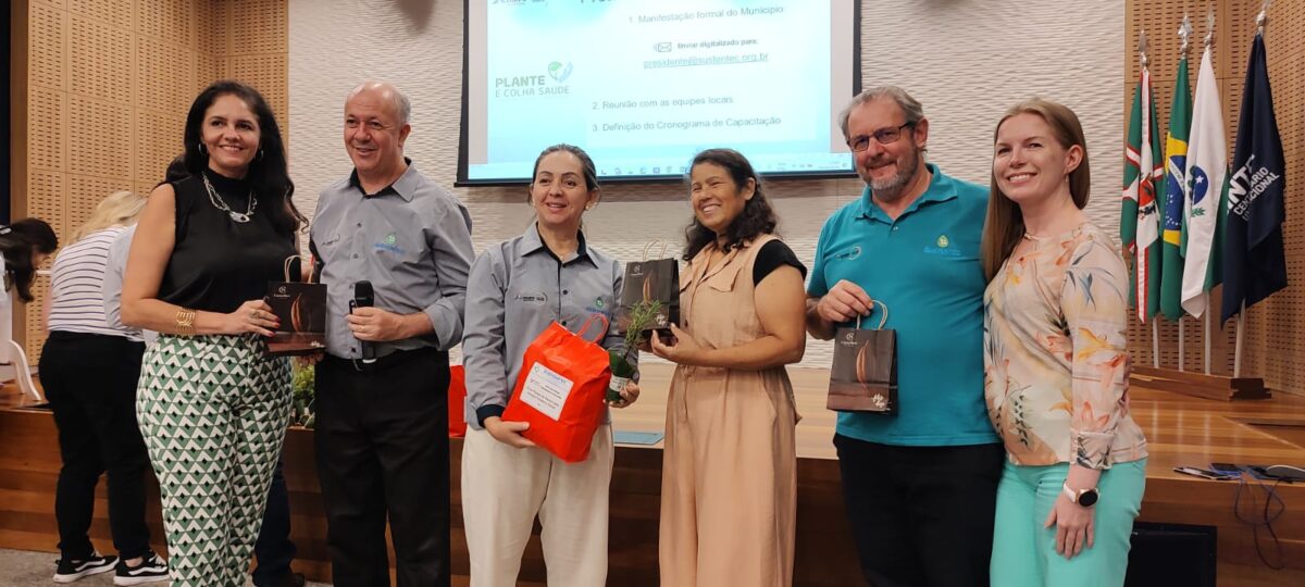 As ações do projeto Plante que Colha Saúde, que visa a territorialização da política nacional das plantas medicinais e fitoterápicos, foi apresentada pelo presidente da Sustentec, Euclides Lara Cardozo Junior, que destacou entre as práticas integrativas, o uso de plantas medicinais e de óleos essenciais nos tratamentos. “Nos sentimos honrados pelo convite, para apresentarmos o projeto e poder contribuir com a sensibilização dos profissionais da saúde, para o uso destes recursos nos tratamentos”, disse ele ao destacar que várias iniciativas surgiram a partir desse encontro. Além de Euclides, os também coordenadores do projeto, Jair Kotz e Cleide Terezinha Santos participaram das atividades.
