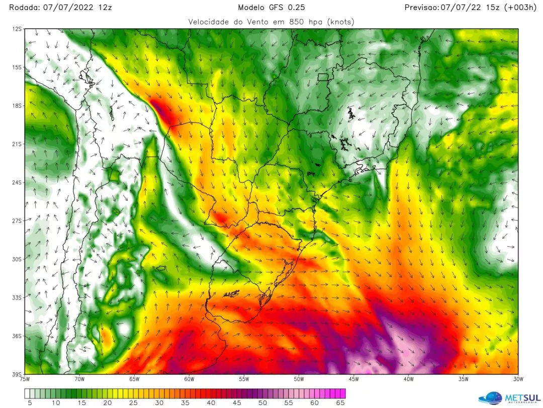 Mais ao Sul do Brasil, ocorre o contrário. Nenhuma massa de ar frio atua na Metade Norte do Rio Grande do Sul e em Santa Catarina, e para piorar a atmosfera está mais úmida e ainda há a atuação desde o começo do mês de sucessivas correntes de jato em baixos níveis da atmosfera trazendo ar mais quente, o que faz com que esta primeira semana de junho termine com temperatura muito alta que o normal para esta época do ano.