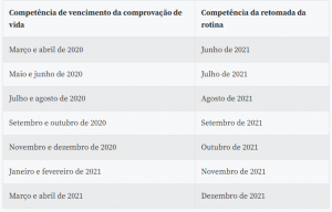 Para evitar aglomerações nas agências, o INSS elaborou um calendário. O cronograma começa em junho para quem deveria ter feito a prova de vida em março e abril de 2020. No mês seguinte, julho, para os beneficiários que deveriam ter feito a prova de vida em maio e junho. O calendário segue até dezembro com a prova de vida para quem deveria ter feito em março e abril de 2021.
