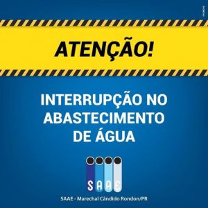 O Serviço Autônomo de Água e Esgoto de Marechal Cândido Rondon (Saae) informa que haverá interrupção no fornecimento de água nesta terça (04) e quarta-feira (05), no período das 08 às 17 horas. O objetivo é interligar o Loteamento Veneza.
