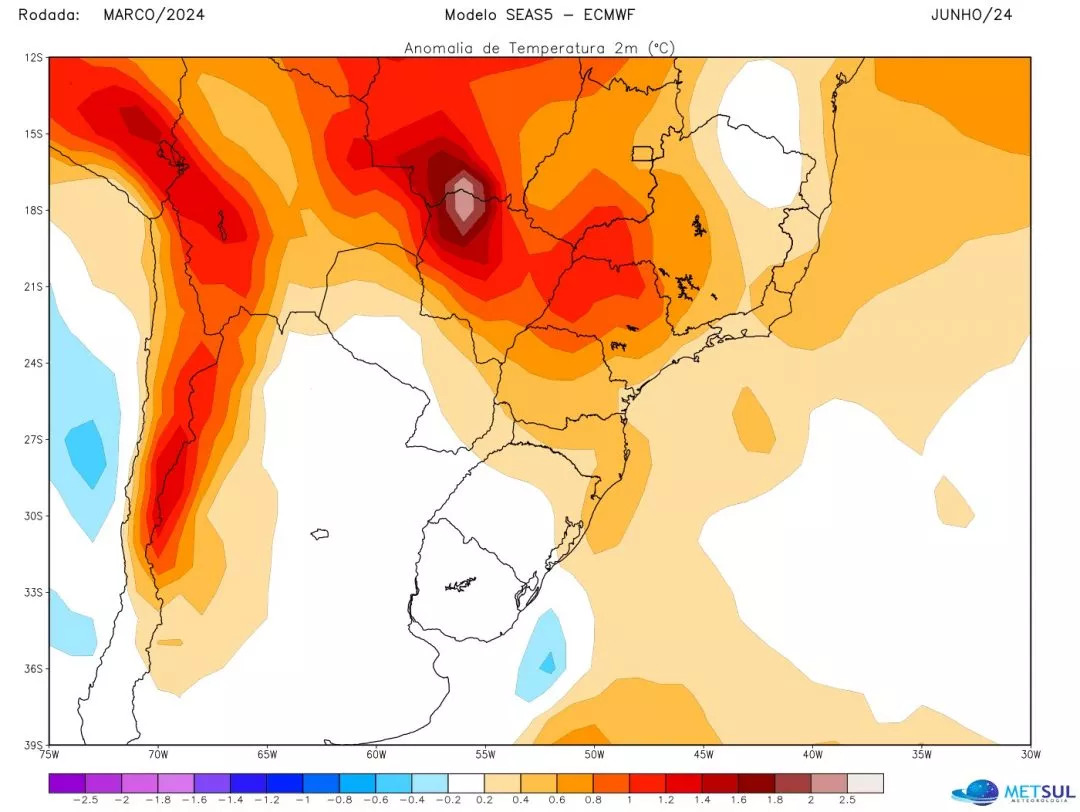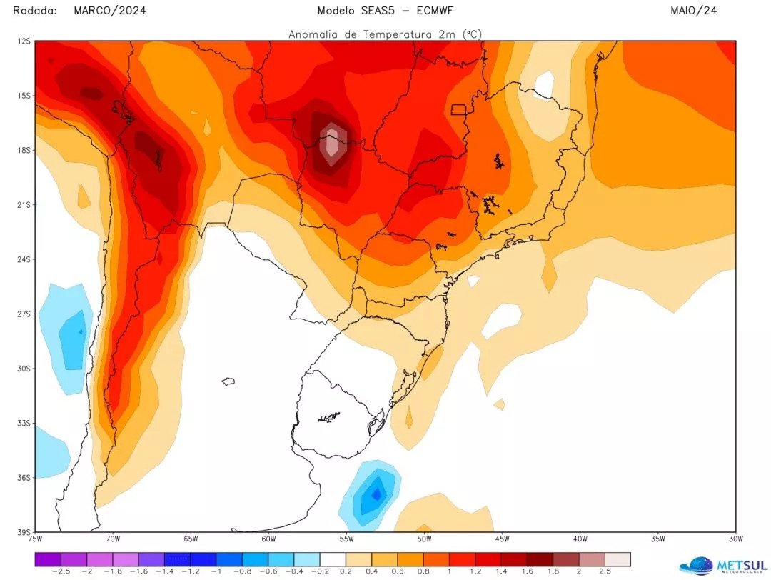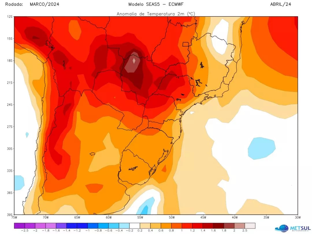 A partir de todos os dados de modelos e outros de analogia histórica e teleconexões climáticas, a MetSul espera um outono com predomínio de dias de temperatura acima a muito acima da média na maioria dos estados do Centro-Sul do Brasil. A temperatura deve ficar muito acima da média principalmente nos estados do Centro-Oeste e no interior de São Paulo. Em áreas próxima da costa no Sudeste, o outono tende a ser mais ameno. Parte de Minas Gerais também pode ter um outono mais ameno com marcas perto ou abaixo da média.