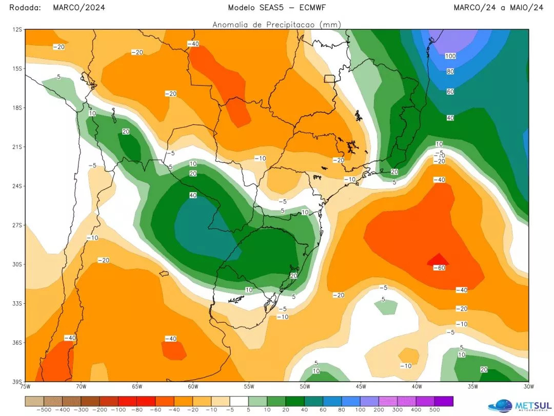 No decorrer da estação, a tendência é de chuva acima da média no Sul principalmente no Rio Grande do Sul e no Leste de Santa Catarina e do Paraná. Há risco de episódios pontuais de precipitação muito intensa, com elevados volumes, capazes de gerar cheias de rios, deslizamentos, alagamentos e inundações. Áreas do Noroeste e do Norte paranaense podem se ressentir de precipitação abaixo da média histórica sazonal de outono.