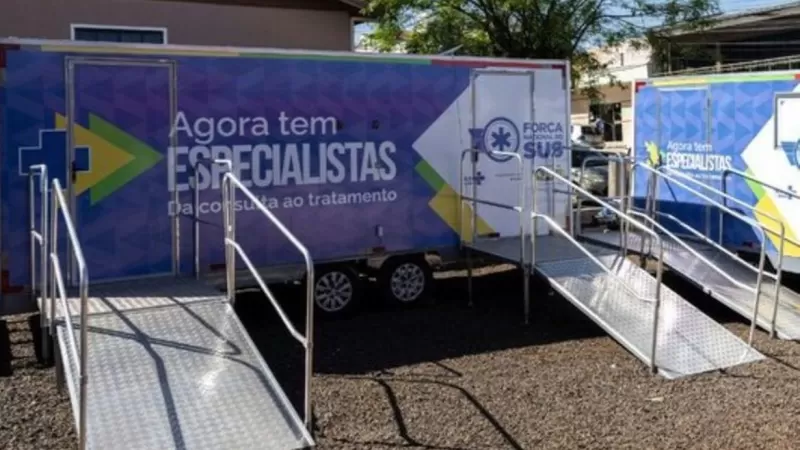 As unidades do programa “Agora Tem Especialistas” foram montadas dentro de dois contêineres e têm estrutura completa para consultas médicas e apoio psicológico e contam com desfibrilador, eletrocardiograma, computadores e insumos diversos.