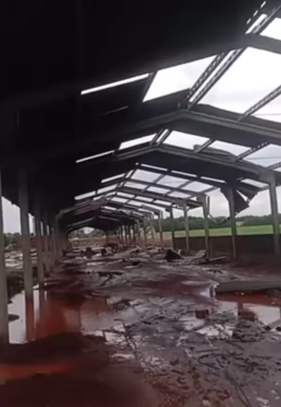 Imagens divulgadas nas redes sociais mostram a dimensão do desastre: plantas destruídas, galpões danificados e áreas transformadas em lagoas.
