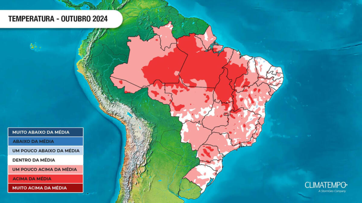 Para outubro de 2024, a previsão indica um cenário de temperaturas acima da média e chuvas irregulares em boa parte do Brasil. Vamos aos detalhes