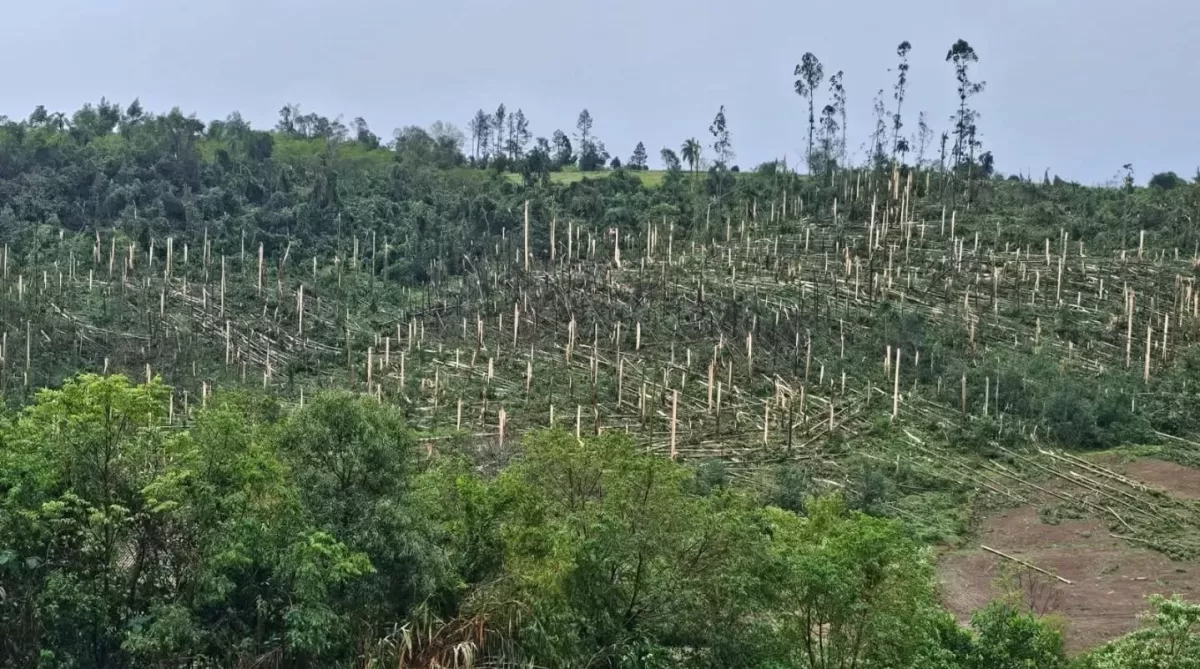 As rajadas de vento superaram os 100 km/h em algumas regiões, segundo análise preliminar da Defesa Civil, que apontou a ocorrência de fenômenos extremos, como a microexplosão atmosférica, ou downburst, registrada na cidade de Itapiranga.