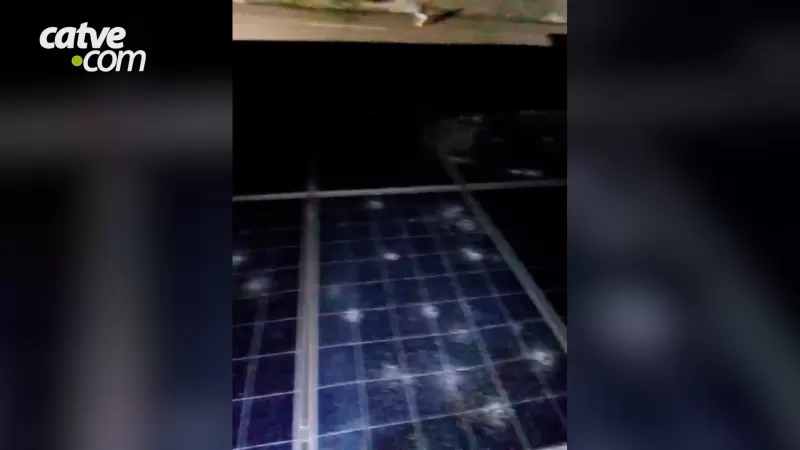 As pedras de gelo, algumas maiores que um ovo, causaram danos sérios principalmente em placas solares instaladas em uma residência.