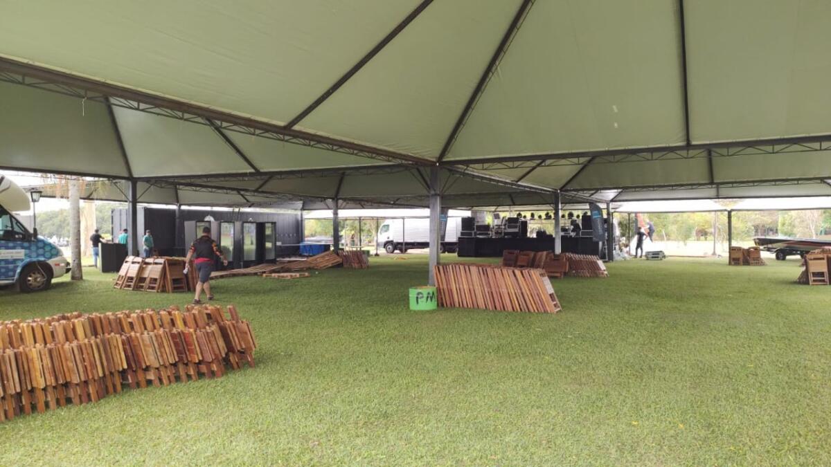 As estruturas que abrigarão a programação estão praticamente montadas. Detalhes finais estão sendo ajustados para que tudo esteja pronto, para logo mais.