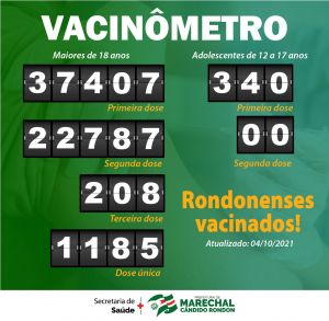 As informações da Secretaria de Saúde indicam que 37.407 rondonenses tomaram a primeira dose da vacina e que 208 pessoas já receberam a terceira aplicação. No público adolescente, entre 12 e 17 anos, a vacina chegou ao braço de 340 rondonenses.