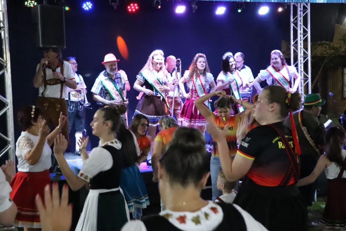 Nesta quinta-feira, a programação será composta pela apresentação da Orquestra Municipal; abertura e sangria do barril; desfile da Rainha Gisele Maria Selhorst, Princesas Lissandra Aline Assenheimer Bourscheid e Caroline Paschoini, e do Casal Fritz & Frida Davi Gerson Zimmermann e Joise Fabiane Brach; baile com a Banda Monte Carlo; classificatória do chope em Metro; praça de alimentação.