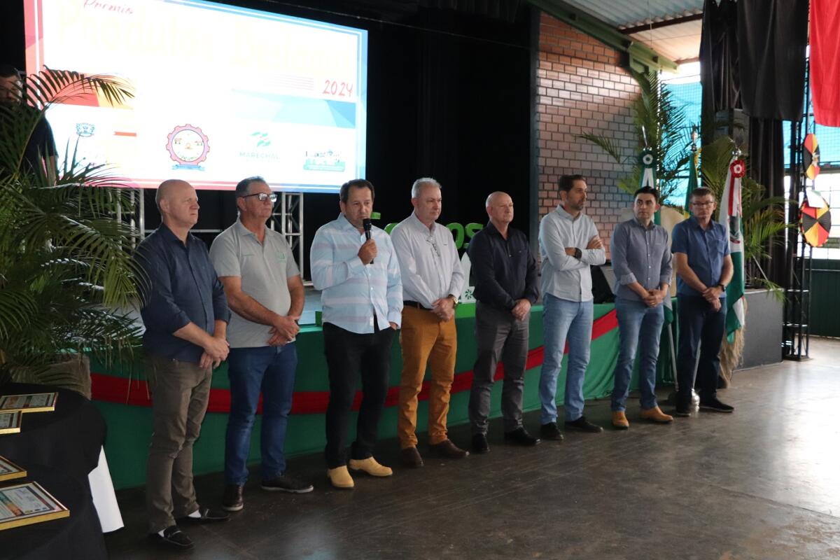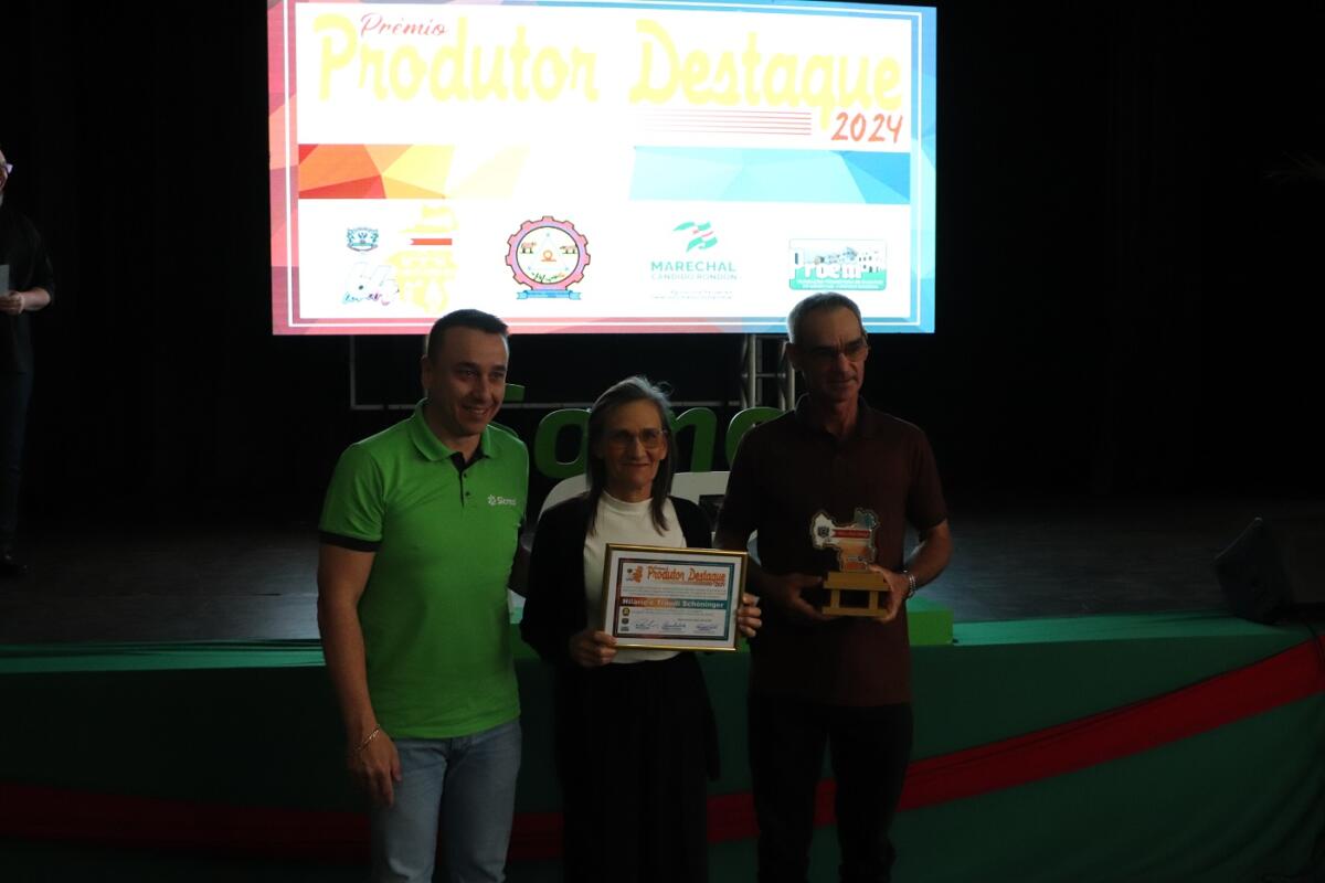 O Prêmio Produtor Destaque, que homenageia famílias de destaque no meio rural, através de investimentos, inovações e implementações de novas tecnologias, foi entregue nesta manhã de sábado (27). A 33ª edição aconteceu no pavilhão alemão, no parque de exposições de Marechal Cândido Rondon, durante a Expo Rondon 2024.